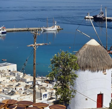 The Windmills (Kato Mili): Perched on a hill overlooking Little Venice and the Old Harbor, these iconic 16th-century structures are the island's signature landmark and another fantastic sunset viewpoint.